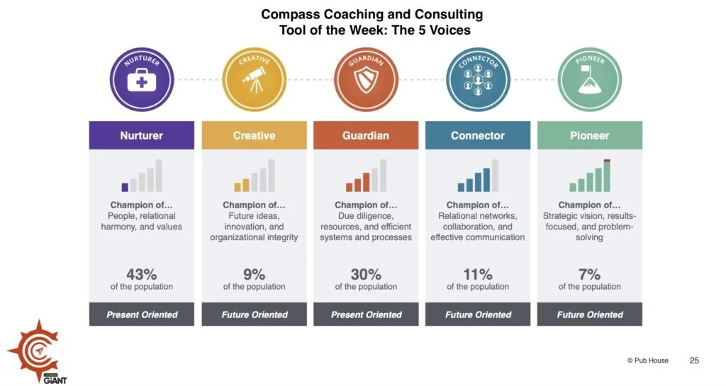 To facilitate productive discussions, we recommend inviting contributions in reverse order, starting with the Nurturer’s opinion, then hearing from Creatives, allowing Guardians to ask their questions, and finally letting Connectors and Pioneers contribute. Harnessing and amplifying all five voices leads to increased productivity and richer team dynamics.